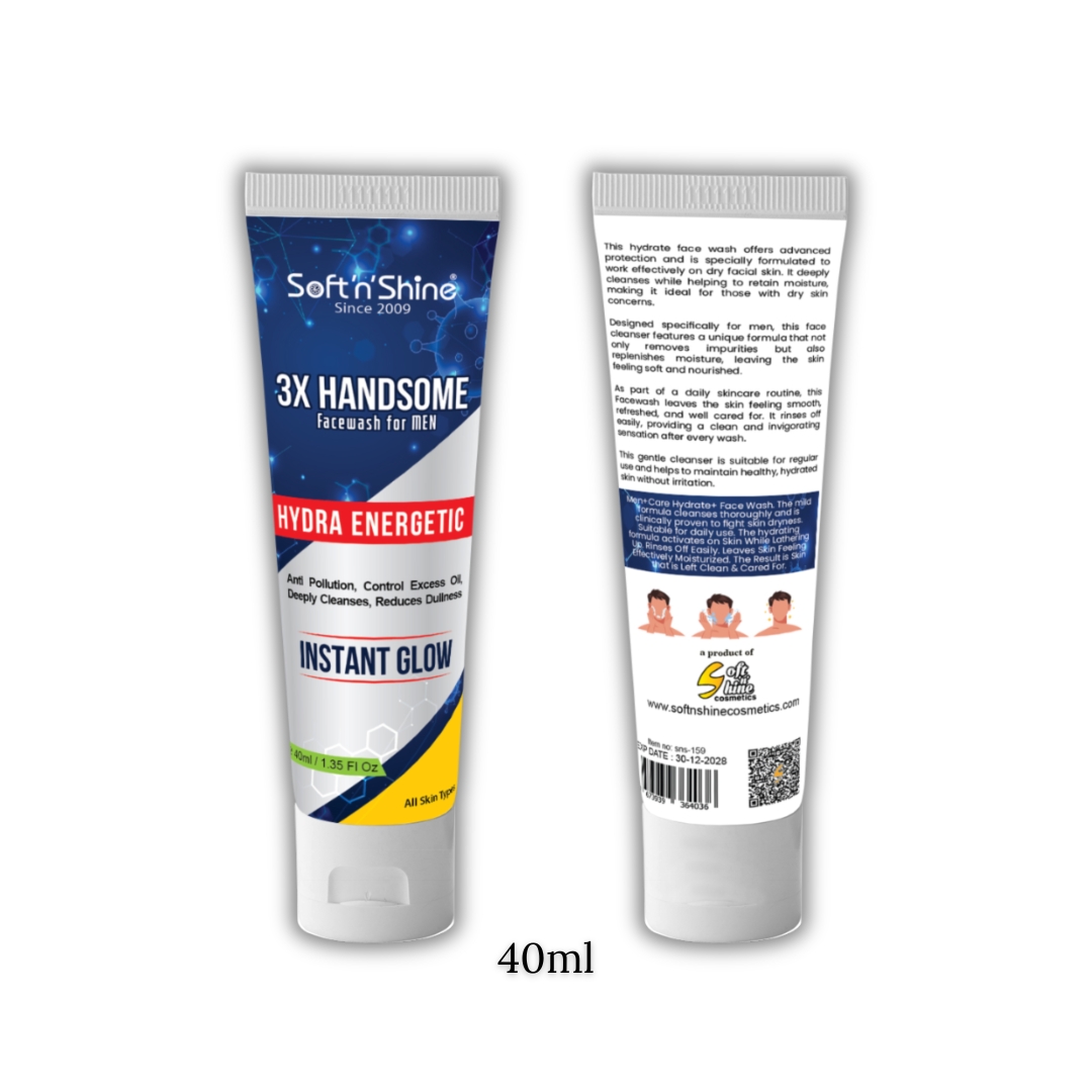 Introducing 3X Handsome – Hydra Energetic Facewash for Men by Soft n Shine — a power-packed daily cleanser designed specifically for men’s skin. Its refreshing formula works deep into the pores to remove dirt, oil, and environmental pollutants, all while maintaining essential skin hydration.