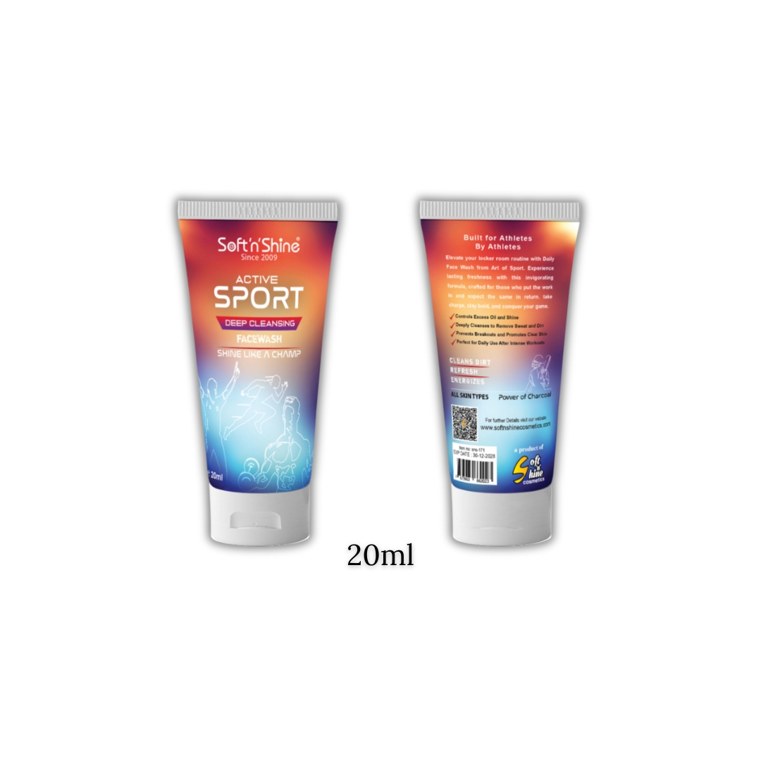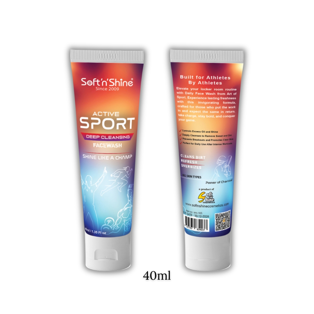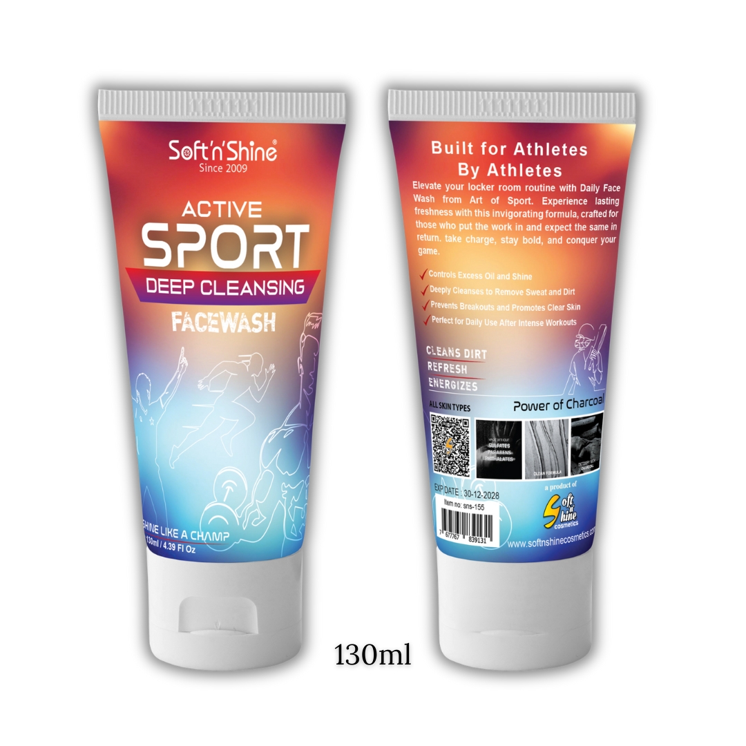 The Active Sport Facewash by Soft n Shine is a powerful, charcoal-infused daily cleanser designed to refresh, purify, and energize skin exposed to sweat, pollution, and physical exertion.